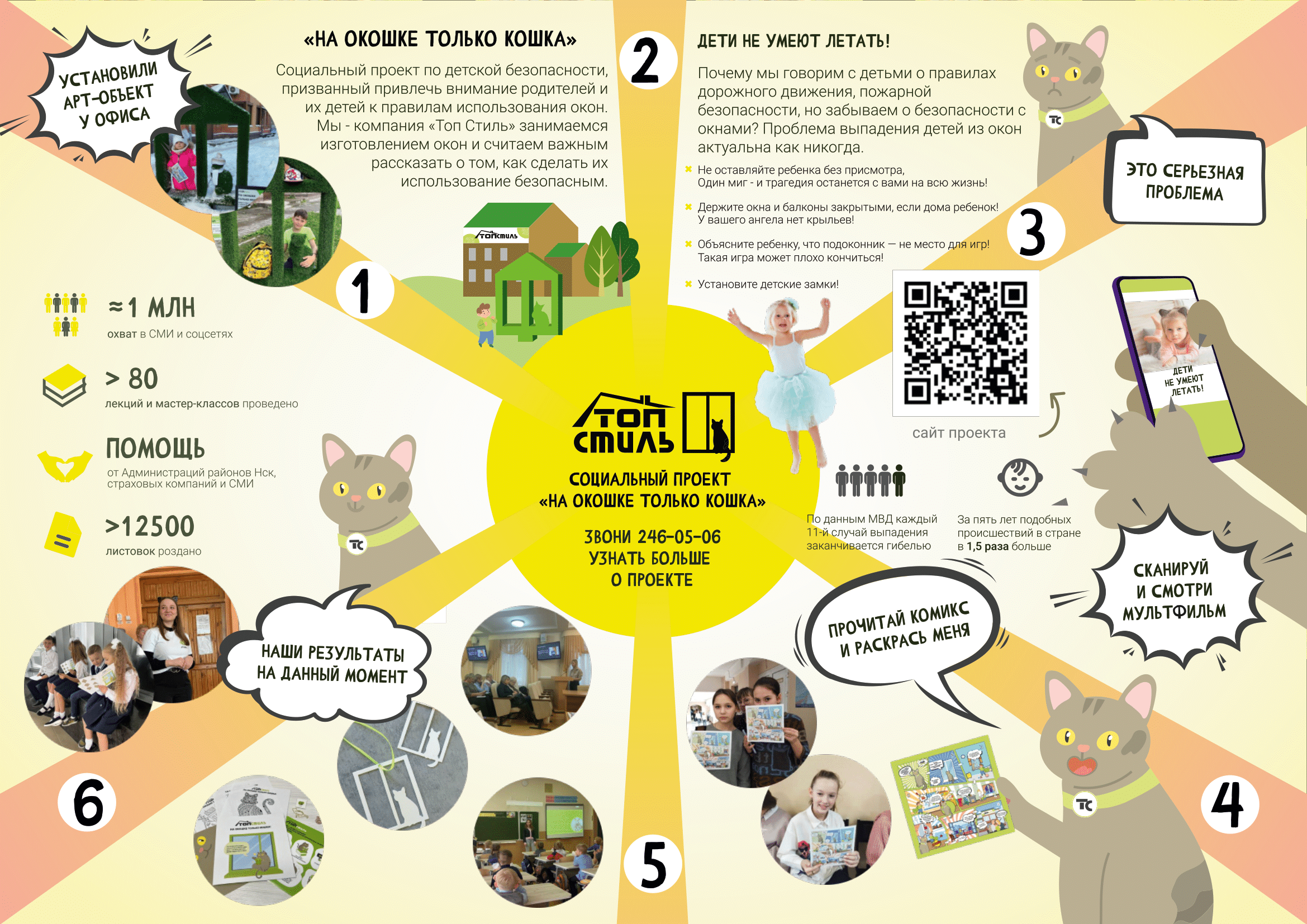 Проект «На окошке только кошка» - это целый комплекс мероприятий и процессов, направленных на достижение его главной цели: привлечение внимания детей и их родителей к проблеме выпадения детей из окон с целью минимизации этих случаев. На фото выше есть подробное описание проекта.
